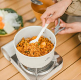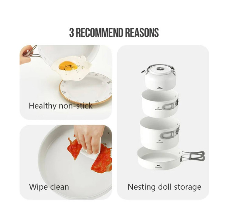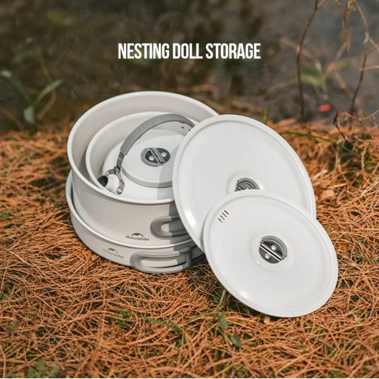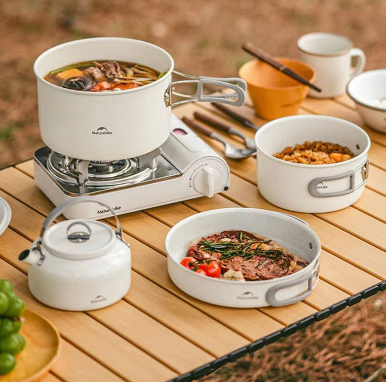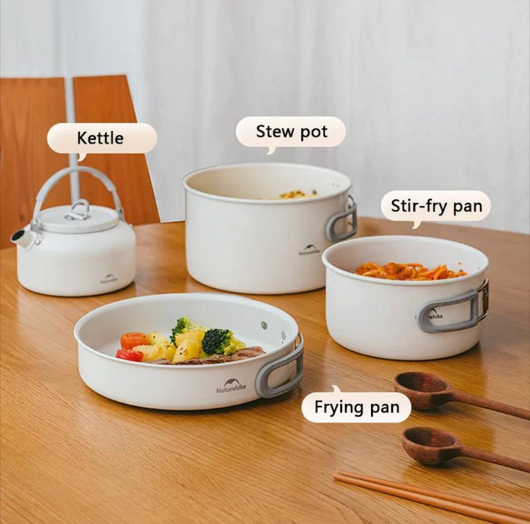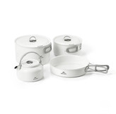 در این ست، چند قابلمه و تابه با ابعاد مختلف وجود دارد که امکان تهیه انواع غذا را در فضای باز فراهم میکند. دستههای تاشو و دربهای مقاوم، استفاده و حملونقل را سادهتر میکنند. اگر علاقهمند به آشپزی در فضای باز هستید، پیشنهاد میکنیم بخش تجهیزات آشپزی کمپینگ را هم بررسی کنید.
