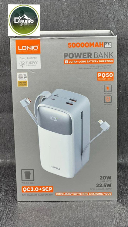 پاوربانک الدینیو مدل PQ50 با ظرفیت فوقالعاده 50000 میلیآمپر ساعت، انتخابی ایدهآل برای افرادی است که نیاز به شارژ مداوم دستگاههای خود دارند. این پاوربانک با پشتیبانی از شارژ سریع 22.5 وات و مجهز به نمایشگر LED برای نمایش میزان شارژ باقیمانده، همراهی مطمئن در سفرها، کمپینگ و استفاده روزمره است.