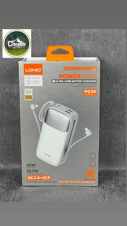 پاوربانک الدینیو مدل PQ30 با ظرفیت 30000 میلیآمپر ساعت، انتخابی ایدهآل برای افرادی است که به دنبال یک منبع انرژی قابلاعتماد و پرقدرت برای دستگاههای خود هستند. این پاوربانک با پشتیبانی از شارژ سریع 22.5 وات و مجهز به نمایشگر LED برای نمایش میزان شارژ باقیمانده، همراهی مطمئن در سفرها، کمپینگ و استفاده روزمره است.