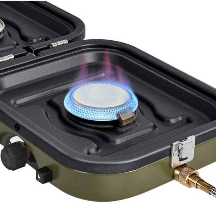 جنس بدنه از استیل ضدزنگ و آلومینیوم مقاومه که هم در برابر حرارت، هم در برابر ضربه و رطوبت، دوام بالایی داره. اتصالش به کپسول گاز خیلی راحته و تنظیم شعله به صورت دقیق انجام میشه، طوری که از غذاهای نیمپز خبری نیست 😋