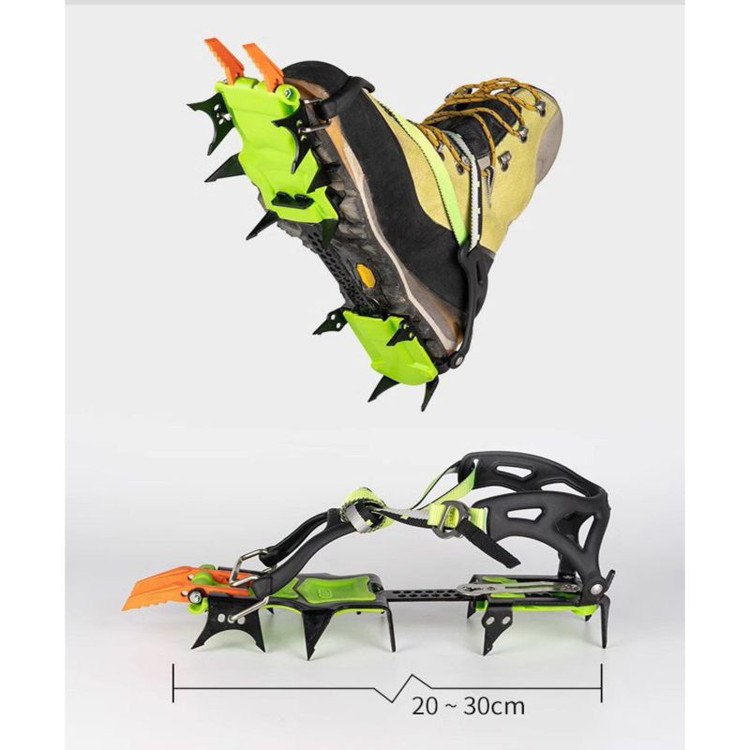 ساختار این کرامپون از فولاد مقاوم و ضد زنگ است که دوام بسیار بالایی دارد و در شرایط سخت کوهنوردی و یخنوردی عملکردی مطمئن ارائه میدهد. تیغههای تیز و محکم آن قابلیت چسبندگی عالی روی سطوح لغزنده و یخی را فراهم میکنند تا هنگام پیمایش، ایمنی و ثبات کامل را تجربه کنید.
