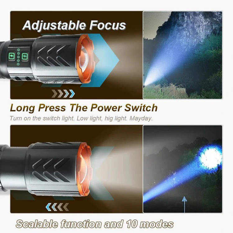 این چراغ قوه ضدآب (IP66) هست، پس نگران شرایط بارندگی یا پاشش آب هم نباش. عملکردش تو هوای مرطوب یا محیطهای سفر عالیه. برد نورش تا ۱۵۰۰ متره و زوم تنظیمی داره که نورت رو متمرکز یا گسترده میکنه. همچنین چند حالت نوردهی مثل نور قوی، نور ضعیف و چشمکزن داره که برای شرایط گوناگون مناسبه