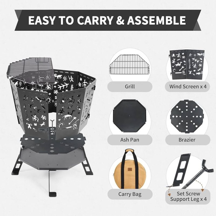این آتشدان با ایجاد جریان هوای بهینه، شعلهای پایدار و قوی فراهم میکند تا پختوپز شما در فضای باز سریع و آسان باشد. با استفاده از چوب و هیزم خشک میتوانید بدون نیاز به گاز یا بنزین، قهوه و چای دم کنید، آب را بجوشانید یا غذاهای سبک کمپینگ تهیه کنید.