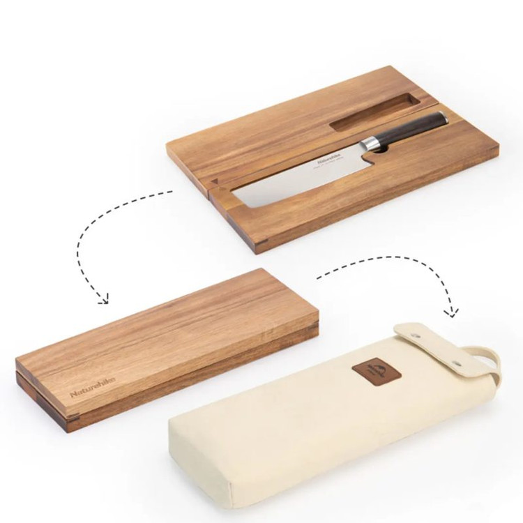 ست چاقو تخته نیچرهایک مدل NH21CJ005 طوری طراحی شده که هم در خانه و هم در سفر کاربرد داره. تخته برش دارای سوراخ آویز است تا بهراحتی خشک شود و چاقو هم درون غلاف مخصوصش قرار میگیرد تا در حین حملونقل ایمن بماند.