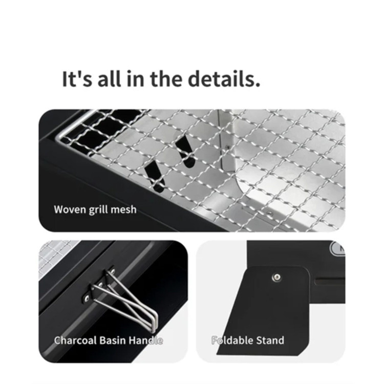 بدنهی باربیکیو از استیل ضدزنگ با ضخامت بالا ساخته شده تا در برابر حرارت، زنگزدگی و خطوخش کاملاً مقاوم باشد. طراحی تاشوی هوشمند آن باعث میشود بهراحتی درون کولهپشتی یا صندوق ماشین جا شود.