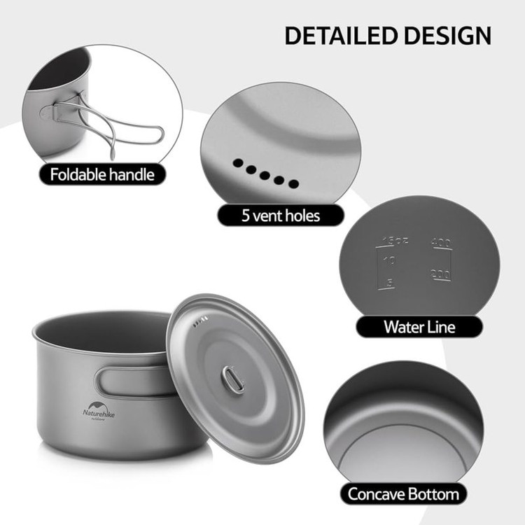قابلمه تیتانیوم نیچرهایک مدل NH18T202-B ترکیبی از سبکی، مقاومت و سلامتیه 🍃.