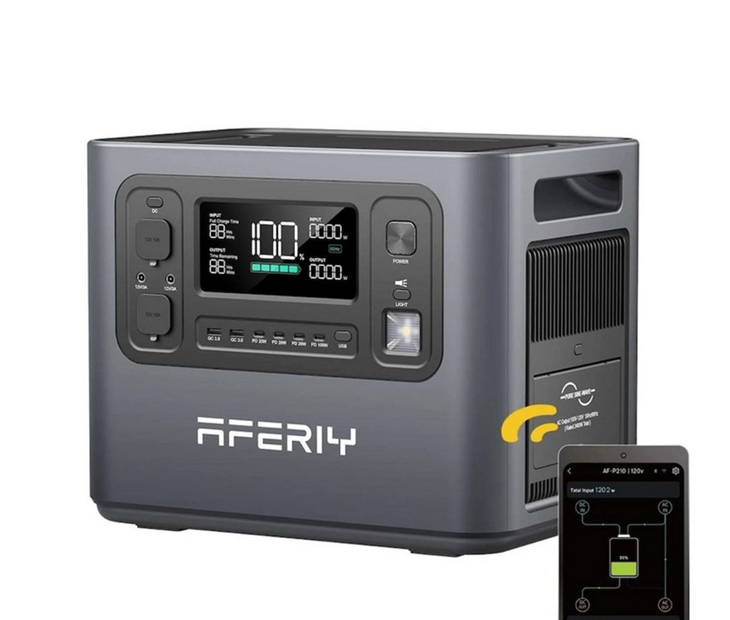 مدل AF-P210 دارای درگاههای متنوعی مثل AC، USB-A و USB-C با توان 100 وات PD است. همچنین قابلیت UPS با تعویض سریع خودکار، سیستم مدیریت باتری (BMS)، فن کمصدا و کنترل از طریق اپلیکیشن را دارد. این امکانات کاربری دستگاه را راحتتر و ایمنتر میکنند